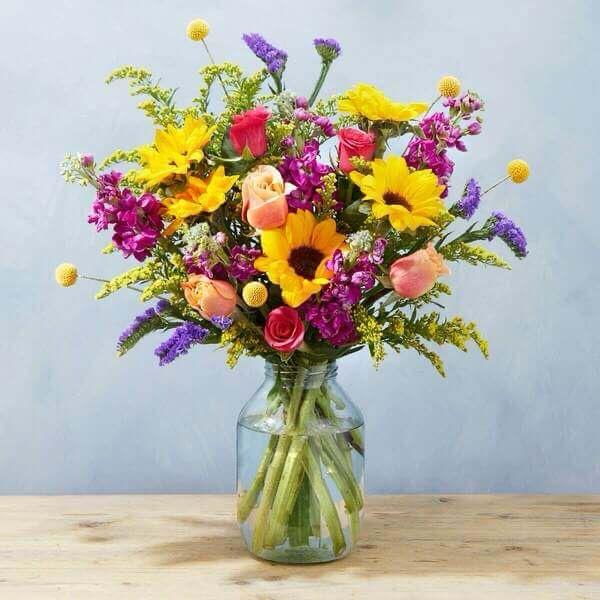 Arreglo colorido con flores surtidas, perfecto para celebrar cumpleaños.