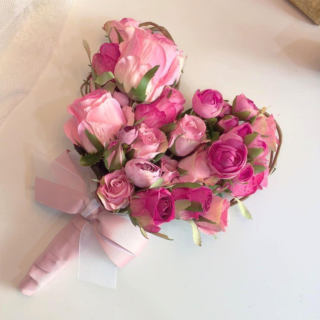 Delicado bouquet en forma de corazón con rosas rosadas frescas, perfecto para transmitir dulzura y romanticismo.